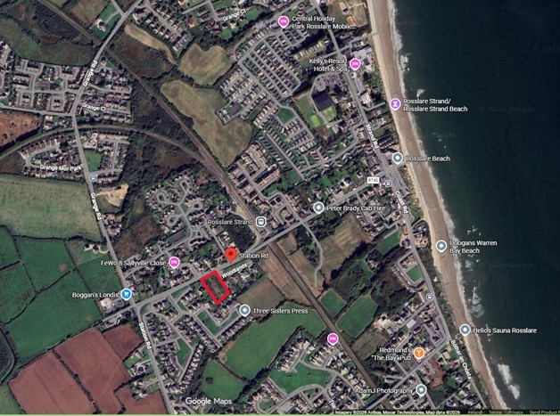 This superb site circa 0.31 ha (c. 0.7660267 acres) comes to the market with full planning permission for two impressive architecturally designed homes . Set less than 250 meters from Rosslare Strand Train Station, and just 650 meters from the main entrance to Rosslare Strand beach, the location offers accessibility and convenience to all necessary amenities.